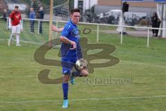 Fotograf: Meyer Jürgen Event: Kreisklasse - TSV Großmehring - FC Geisenfeld Bildbeschreibung: Kreisklasse - Saison 2024/25- TSV Großmehring - FC Geisenfeld - Johannes Brunnhuber blau Großmehring - XXXXX - Foto: Meyer Jürgen
