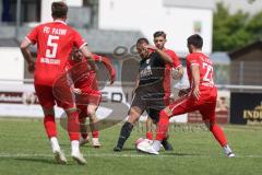 Fotograf: Meyer Jürgen Event: Bezirksliga - TSV Gaimersheim - FC Fatih Ingolstadt Bildbeschreibung: Bezirksliga - Saison 2024/25- TSV Gaimersheim - FC Fatih Ingolstadt - Hakan Düzgün (Nr.25 - TSV Gaimersheim) - Boubacarr Saho rot Fatih links - Erdogan Nasufaj rot Fatih - Foto: Meyer Jürgen